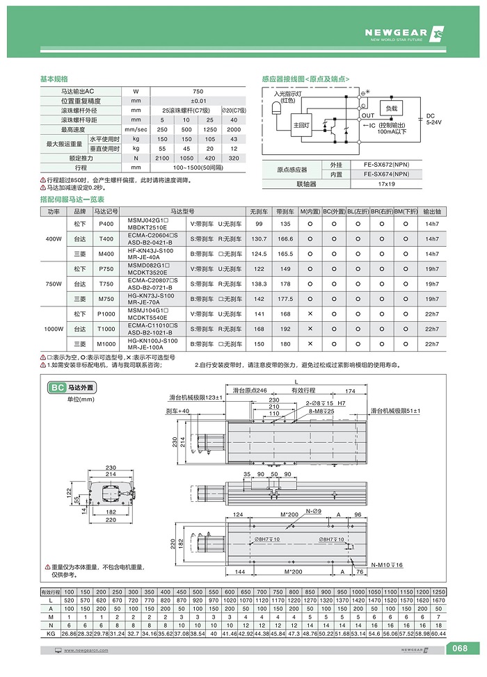 直線模組BSH-220系列·750W電機(jī)