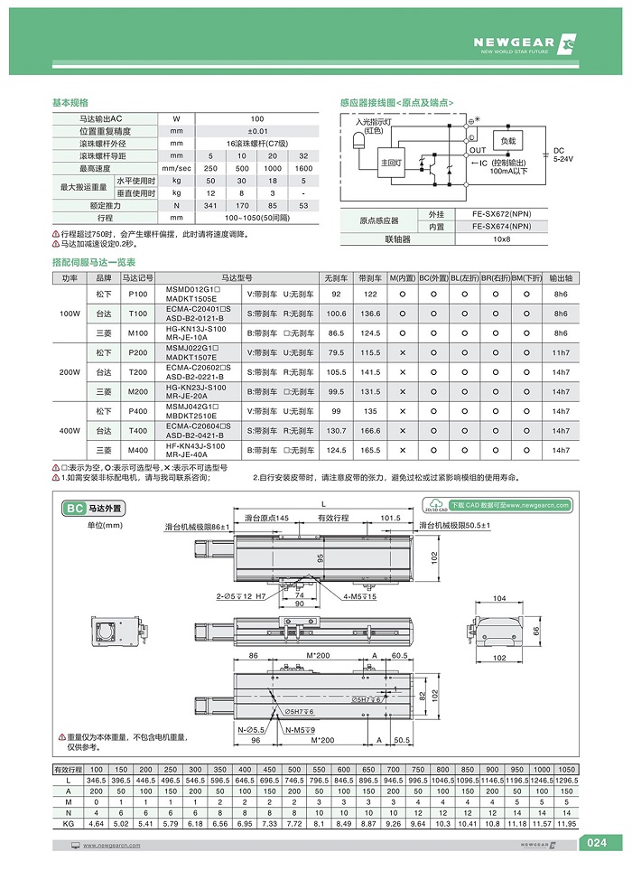 直線模組BSH-102系列·100W電機(jī)